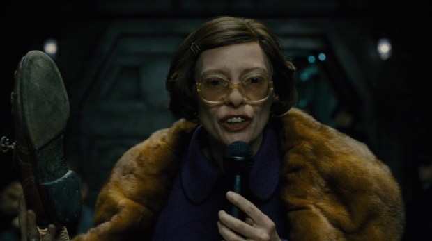 Caso você consiga desgrudar os olhos da dentadura de Tilda Swinton, preste atenção: ao desenho de produção de Ondrej Nekvasil (O Ilusionista), capaz de arrancar horror ou admiração a cada vagão que avançamos com os personagens – há mesmo um vagão-aquário. Seu trabalho intensifica o tom alegórico que Bong imprime à narrativa, com traços dos filmes de Terry Gilliam (Brazil – O Filme, Os Doze Macacos, Bandidos do Tempo). Gilliam, vale dizer, é o nome do personagem de John Hurt, o mentor de Curtis no trem.