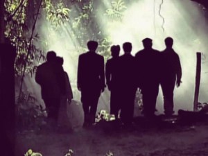 A câmera desliza novamente para os Vargas, que se se afastaram para o canto em um momento de intimidade. O beijo romântico – entre um mexicano de pele escura e uma loira americana, numa época em que o movimento pelos direitos civis nos EUA apenas começava – “detona” a bomba no carro já fora da cena. Assim como o idílio do casal interracial, o tema musical dos Vargas e o bendito bongô são interrompidos pelo estampido brusco e violento.